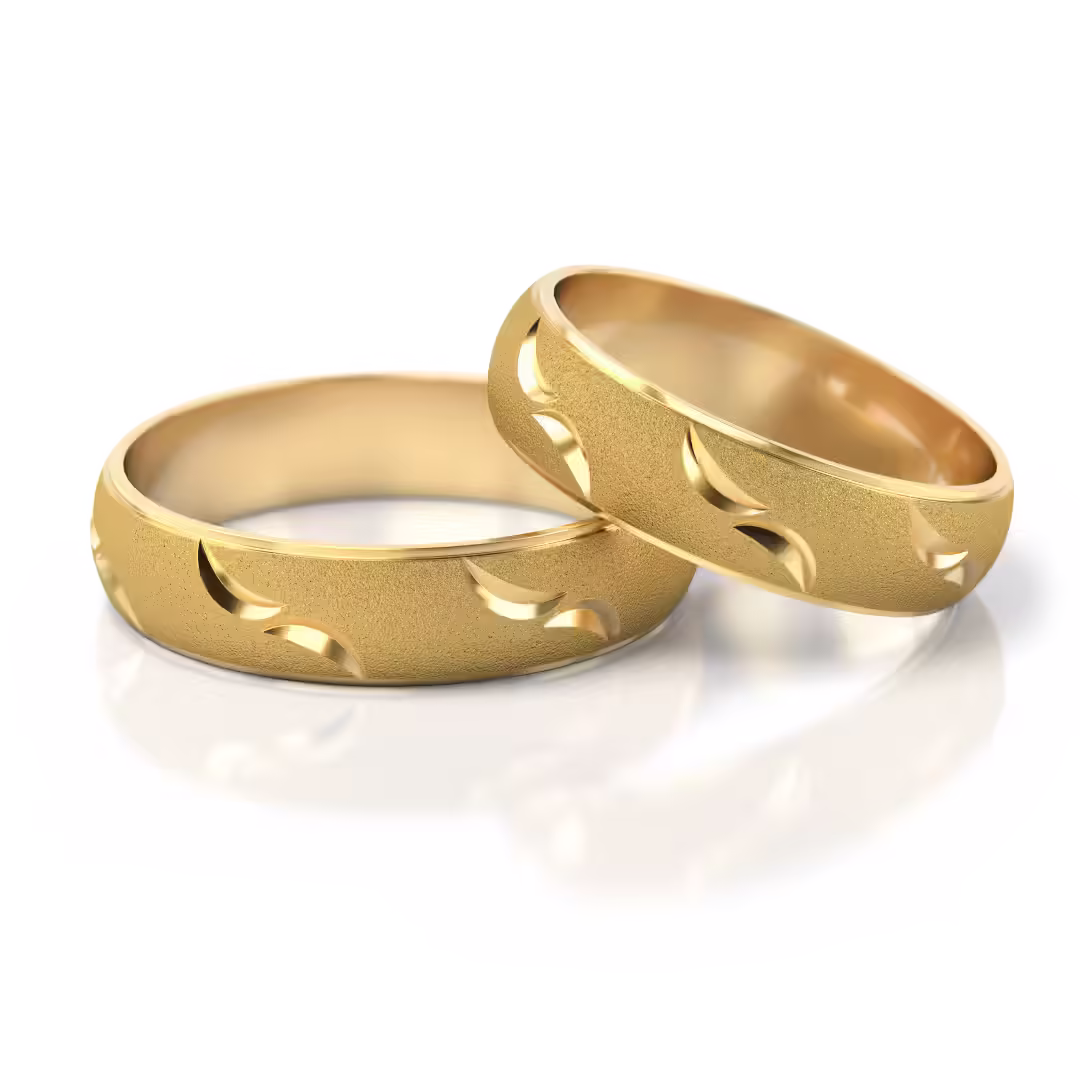 Te obrączki to doskonały wybór dla par, które szukają harmonii pomiędzy klasyczną formą a nowoczesnym designem. Piaskowane wykończenie, precyzyjnie grawerowane wzory oraz profil soczewkowy czynią te obrączki wyjątkową i trwałą pamiątką na całe życie, która nie tylko symbolizuje miłość, ale również komfort i indywidualność.