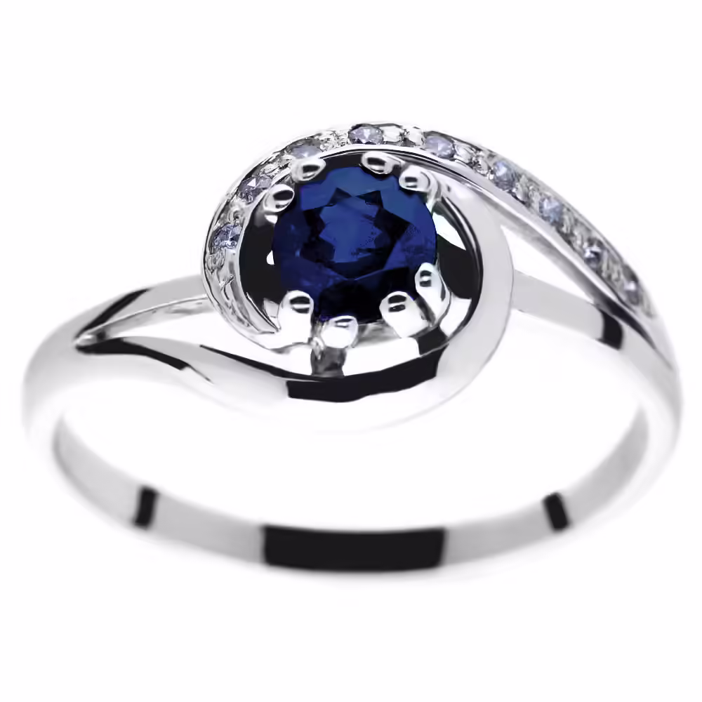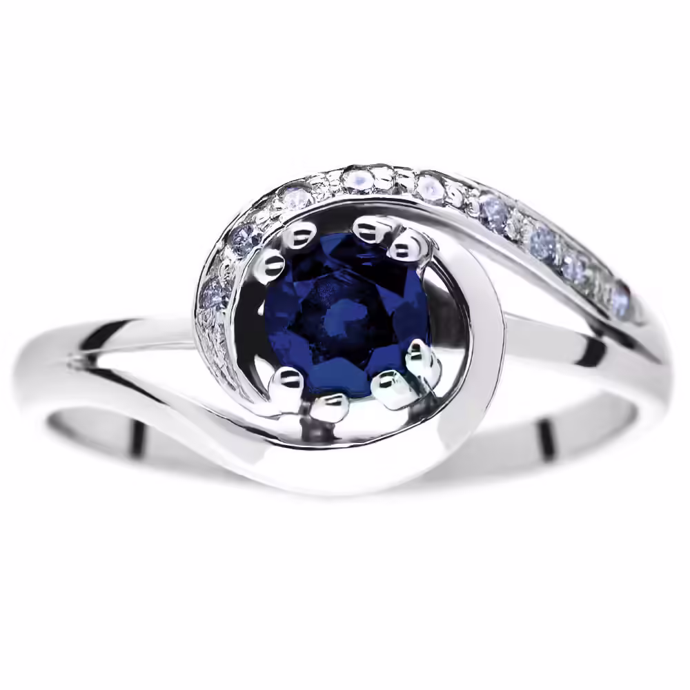 Głównym punktem tego pierścionka zaręczynowego jest centralnie osadzony kamień o intensywnej, granatowej barwie. Jest to szafir, który przyciąga wzrok swoją przejrzystością i głębią koloru. Wybór kolorowego kamienia szlachetnego to świadoma decyzja o rezygnacji z przewidywalnych wzorów na rzecz biżuterii z charakterem. Wzór ten nawiązuje swoją stylistyką do ponadczasowego stylu retro, co nadaje mu szlachetnego, kolekcjonerskiego wyglądu.
