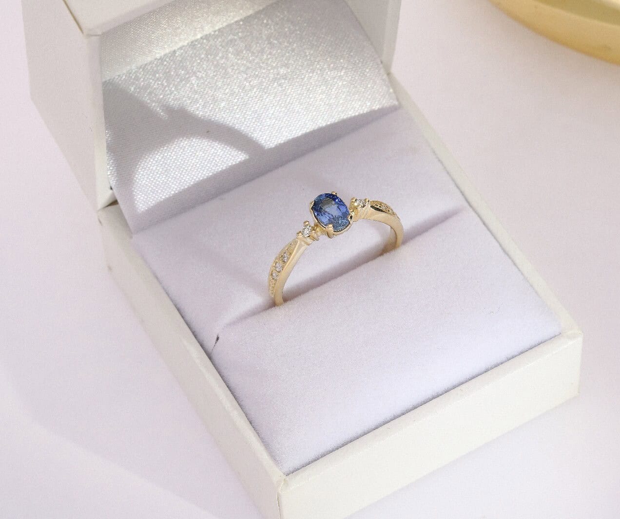 Centralnym punktem pierścionka zaręczynowego Stellar jest naturalny szafir o szlifie owalnym. Szafiry są cenione za swoją wyjątkową twardość (9 w skali Mohsa), co w praktyce oznacza, że są one niemal tak odporne na zarysowania jak diamenty, co czyni je idealnym wyborem do biżuterii noszonej codziennie.