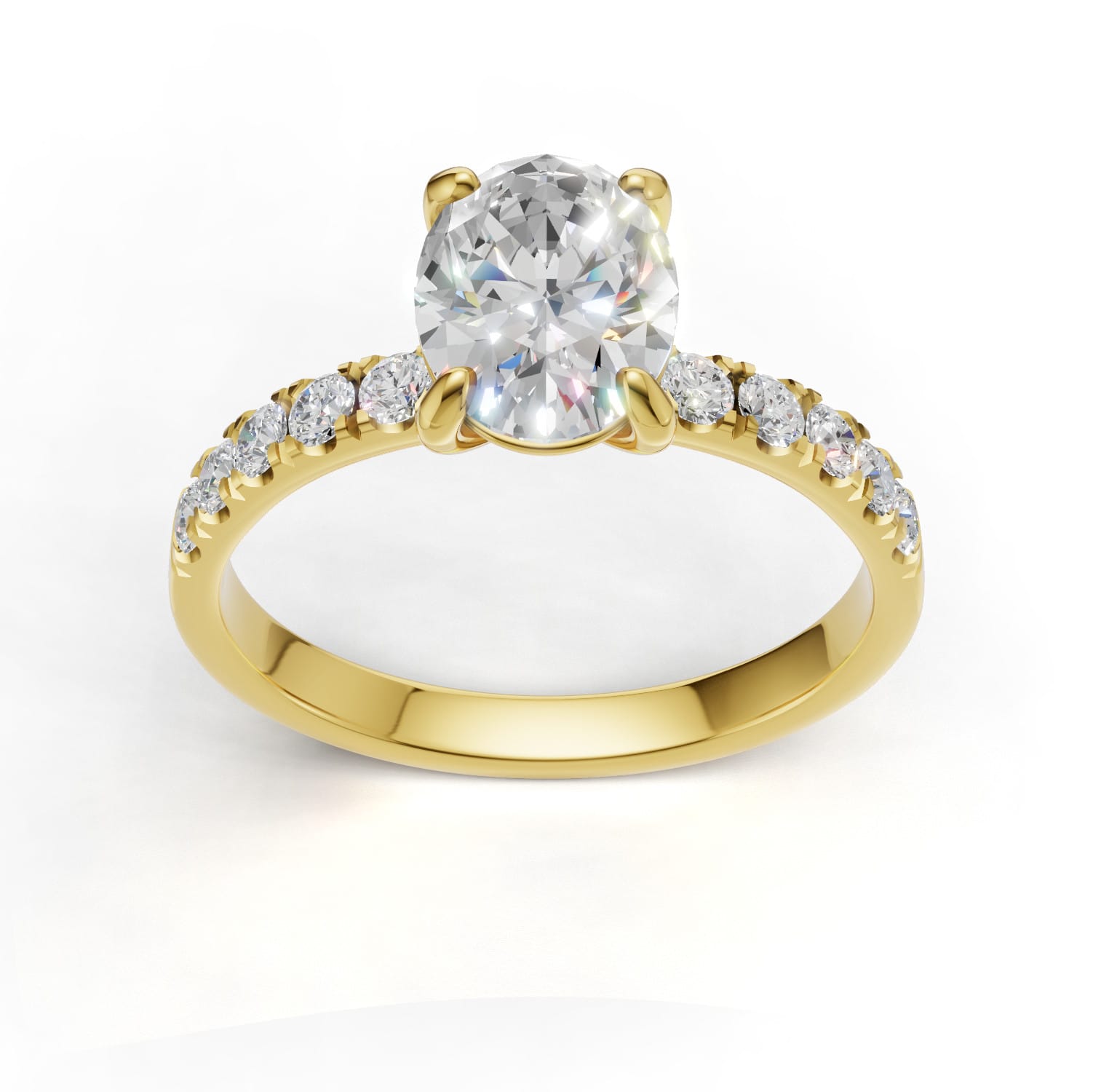 Dodatkowym atutem pierścionka są naturalne diamenty boczne, starannie osadzone w szynie. W modelu Valentina znajduje się 10 naturalnych diamentów bocznych o łącznej masie 0.30 ct, które subtelnie podkreślają centralny kamień, dodając całości głębi i ekskluzywnego charakteru. Boczne kamienie zostały rozmieszczone symetrycznie, dzięki czemu pierścionek zachowuje idealne proporcje i prezentuje się niezwykle elegancko z każdej perspektywy.