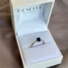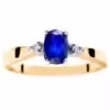 Ten pierścionek zaręczynowy został wzbogacony o dwa diamenty o szlifie brylantowym o łącznej masie 0,03 ct. Choć ich rola wydaje się estetyczna, z technicznego punktu widzenia służą one jako punkty świetlne, które kontrastują z ciemną tonacją szafiru. Wysoki współczynnik załamania światła brylantów powoduje, że centralny szafir zyskuje dodatkową dynamikę i wydaje się jaśniejszy. Symetryczne rozmieszczenie brylantów po bokach szyny zapewnia harmonijny rozkład masy biżuterii, co przekłada się na stabilność pierścionka na palcu.