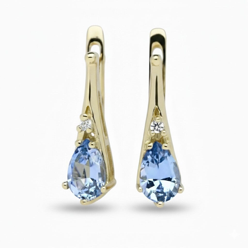 Złote kolczyki na angielskim zapięciu z topazem syntetycznym i cyrkoniami to prawdziwa ozdoba, która przyciąga wzrok i zachwyca swoim blaskiem. Starannie wykonane z najwyższej jakości złota próby 585, łączą w sobie klasykę, elegancję i subtelny urok. Ich design został dopracowany w najmniejszych szczegółach, dzięki czemu każda kobieta poczuje się wyjątkowo, nosząc je na co dzień lub przy specjalnych okazjach.