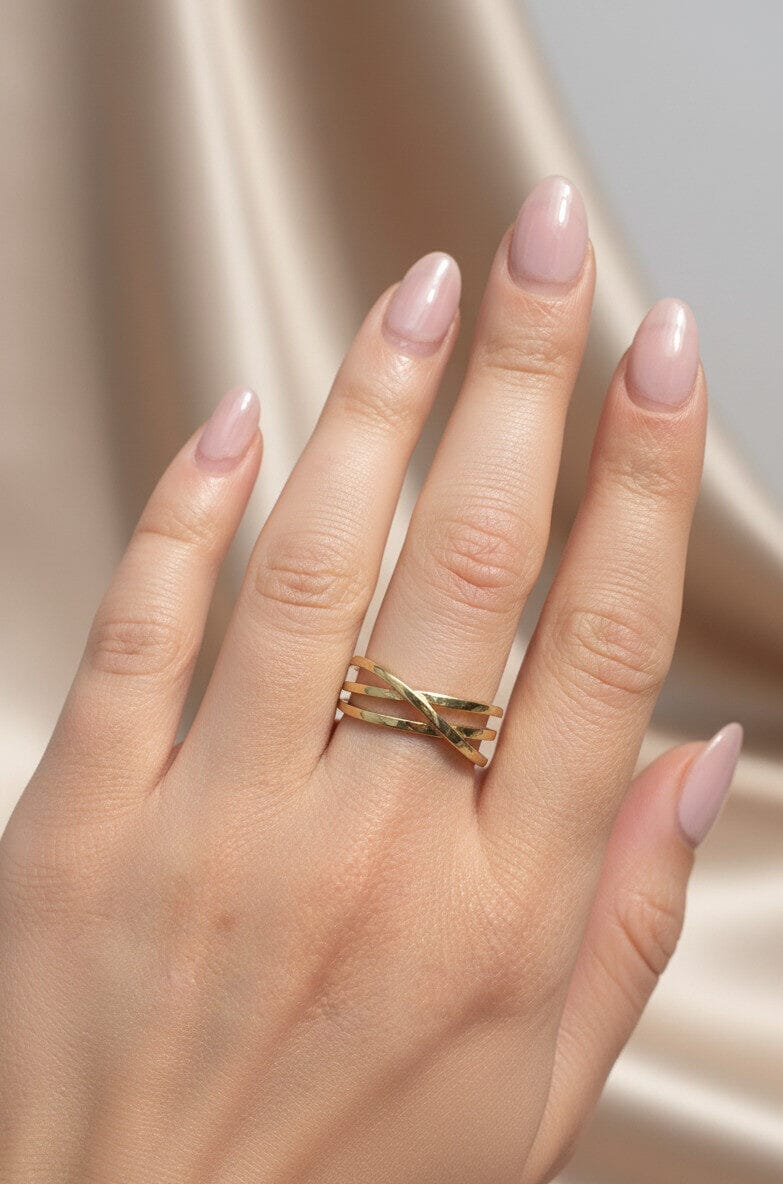 Stylowy złoty pierścionek w formie delikatnej plecionki to wyjątkowy dodatek, który łączy klasykę z nowoczesnym designem. Trzy przeplatające się pasma tworzą subtelną, a jednocześnie efektowną kompozycję, idealną zarówno na co dzień, jak i na specjalne okazje.